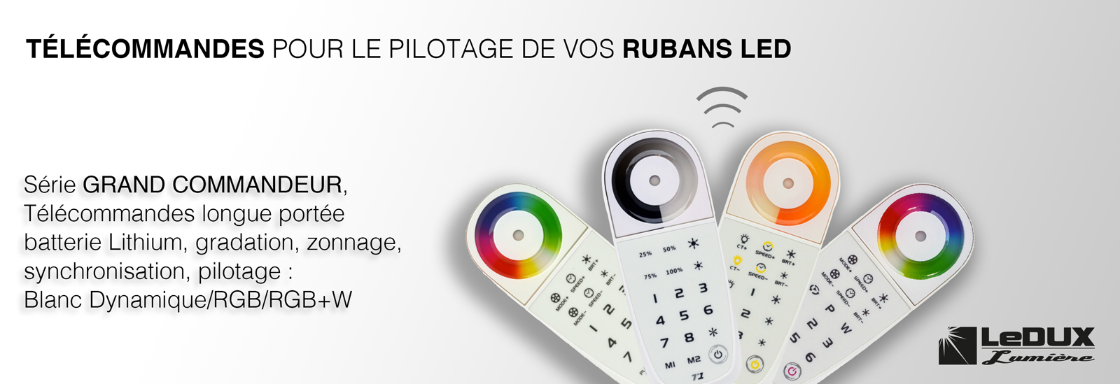 LeDUX Lumière vous propose un choix de plus de 90 références de rubans LED normalisés et innovants, et plus d’une centaine de références de profilés Aluminium pour l’intégration ainsi que les meilleures solutions de pilotage du marché.